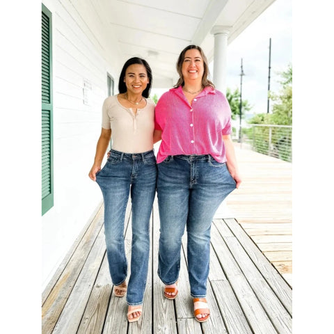It gives a straight and narrow gal the appearance of an hourglass and it gives curvy gals a balanced figure. If you don't own Bootcut - grab these and give them a try! You will be blown away by how flattering they fit.
