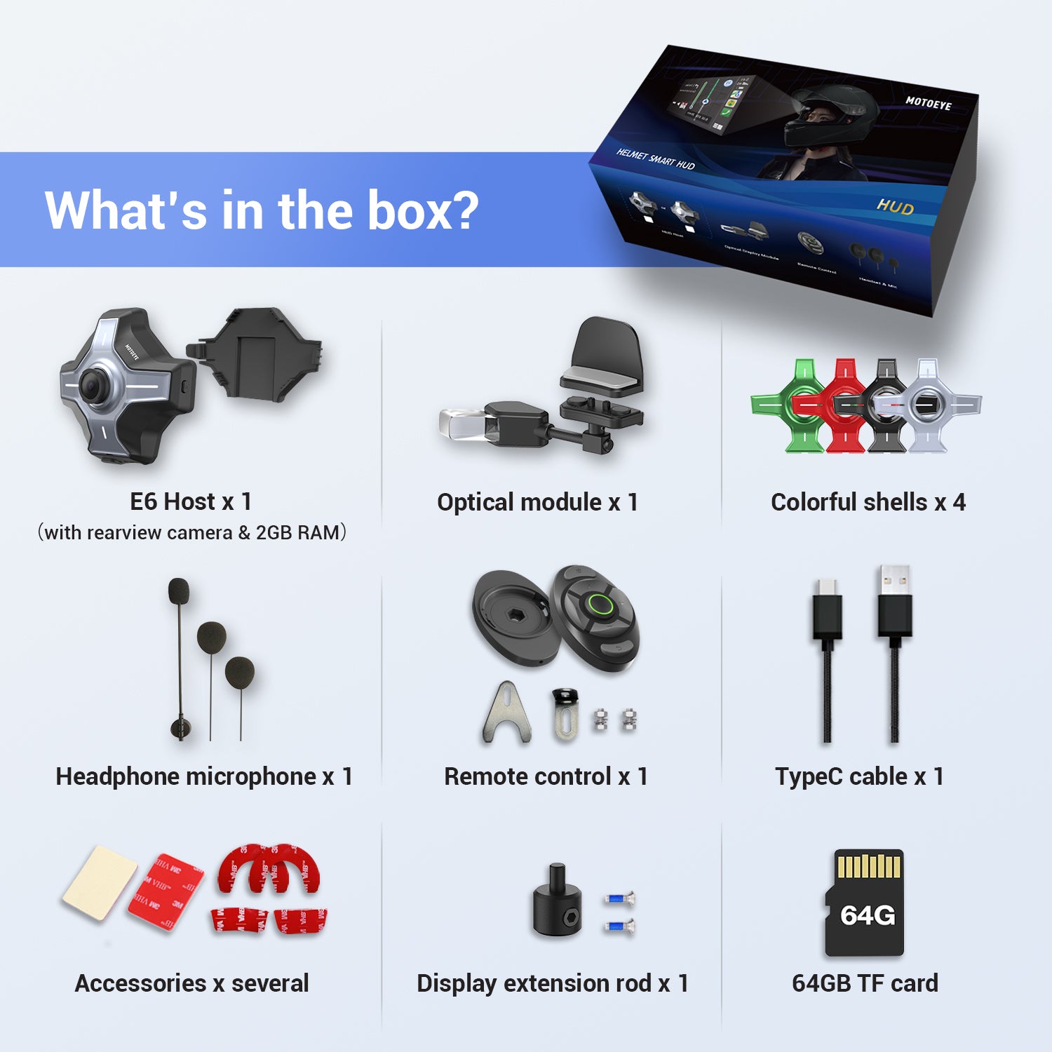 E6 Motorcycle Helmet HUD, Head Up Display, Bluetooth,GPS, CarPlay, Android Auto, Mesh Intercom, Rearview Camera, Remote Control, Noise Reduction, RGB Lights, IP66 for All Helmets